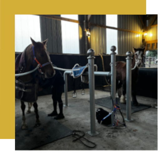 - Poteaux d’attache permettant de soigner et manipuler les chevaux en toute sécurité